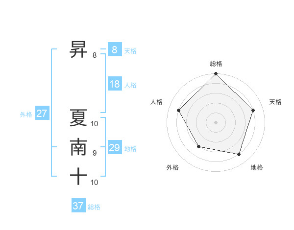 昇 夏南十さんの総格は37画の5点!