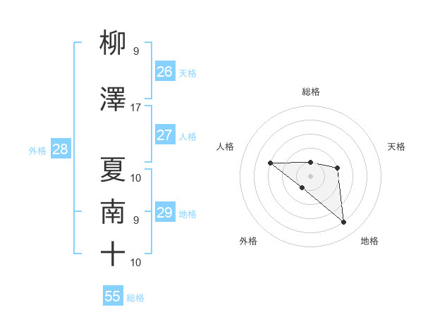 柳澤 夏南十さんを姓名の画数から五運を鑑定