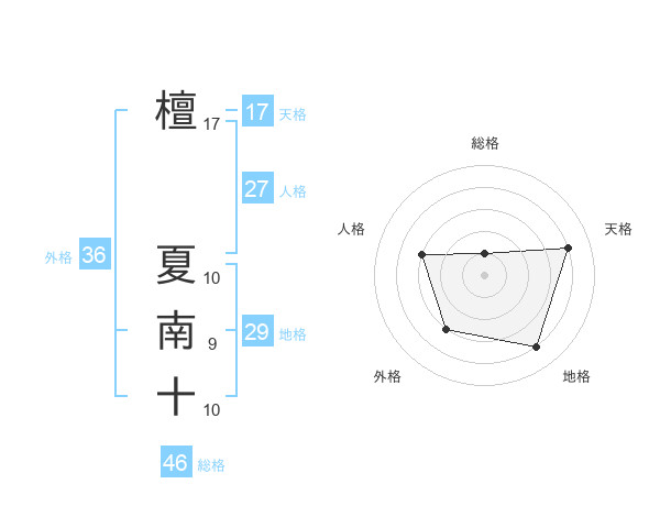 檀 夏南十さんの天格は17画の4点!