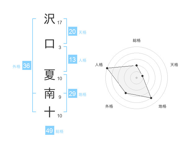 沢口 夏南十さんを姓名の画数から五運を鑑定