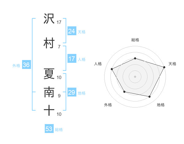 沢村 夏南十さんを姓名の画数から五運を鑑定
