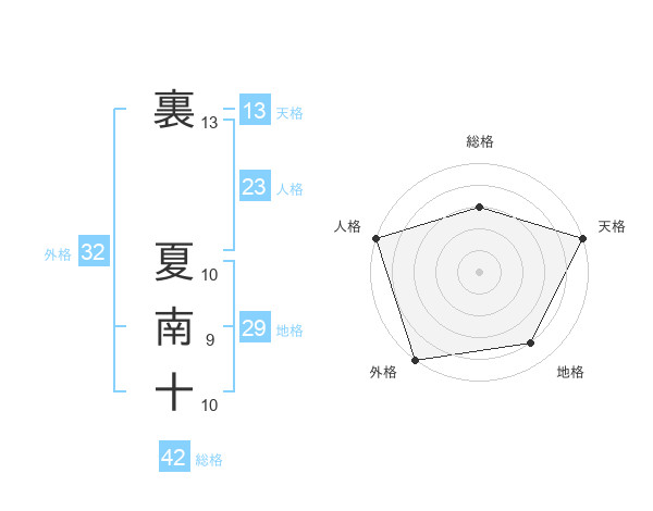 裏 夏南十さんの天格は13画の5点!
