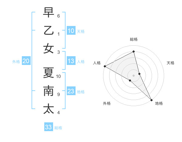 早乙女 夏南太さんを姓名の画数から五運を鑑定