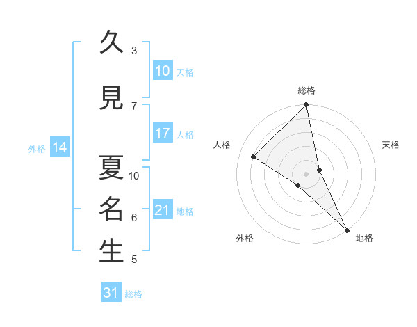 久見 夏名生さんを姓名の画数から五運を鑑定