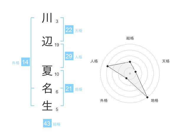 川辺 夏名生さんを姓名の画数から五運を鑑定