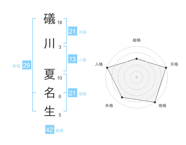 礒川 夏名生さんの天格は21画の5点!