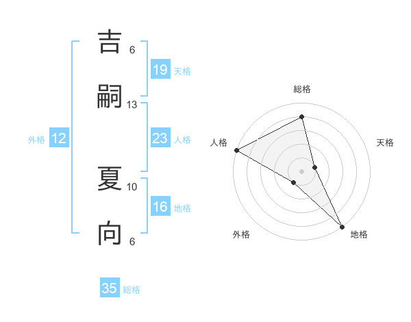 吉嗣 夏向さんの総格は35画の4点!