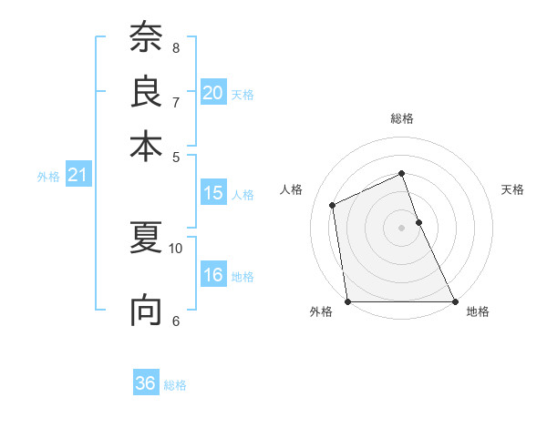 奈良本 夏向さんを姓名の画数から五運を鑑定