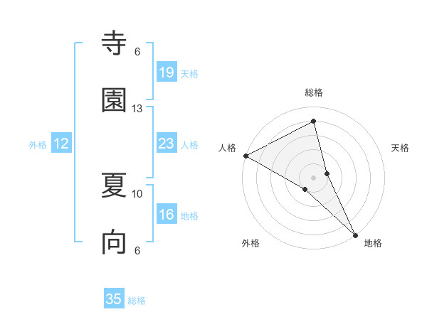 寺園 夏向さんを姓名の画数から五運を鑑定