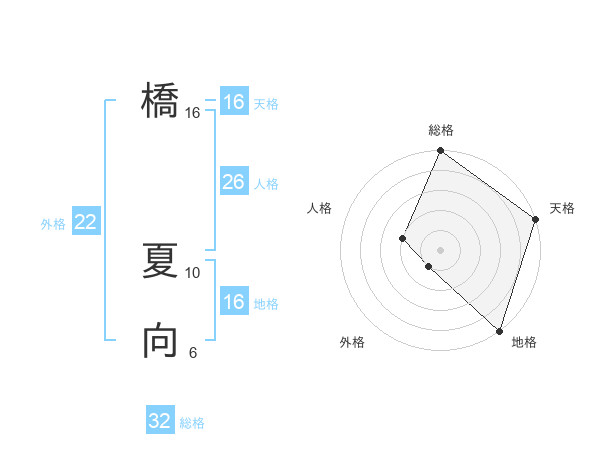 橋 夏向さんの天格は16画の5点!