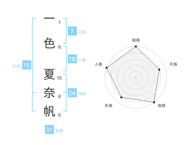 一色 夏奈帆さんを姓名の画数から五運を鑑定