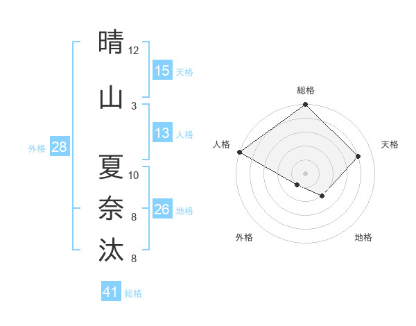 晴山 夏奈汰さんの天格は15画の4点!