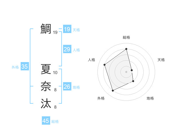 鯛 夏奈汰さんの総格は45画の4点!
