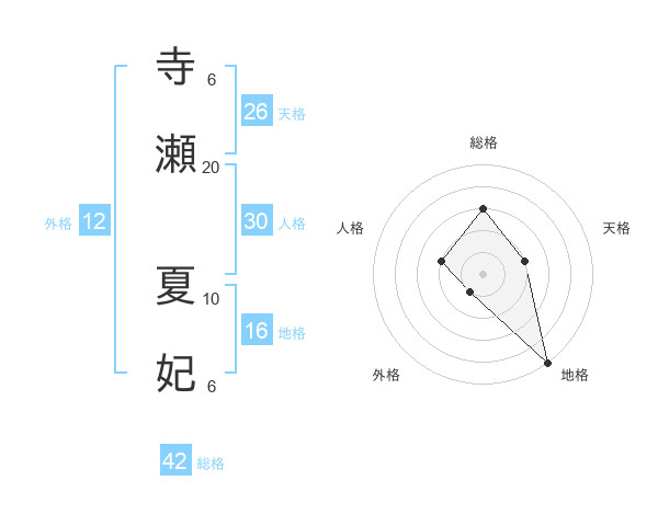 寺瀬 夏妃さんの総格は42画の3点!