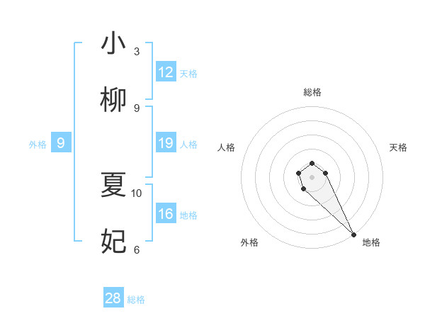 小柳 夏妃さんの総格は28画の1点!
