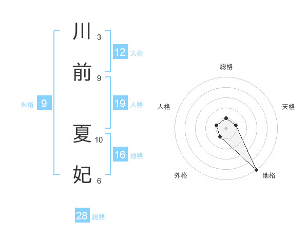 川前 夏妃さんの総格は28画の1点!