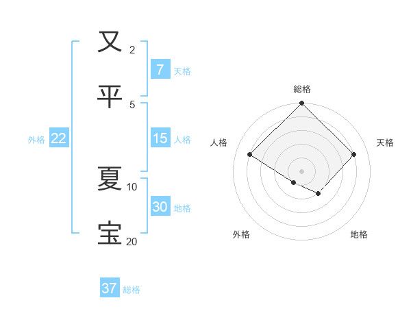 又平 夏宝さんの総格は37画の5点!