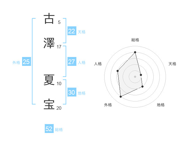 古澤 夏宝さんを姓名の画数から五運を鑑定