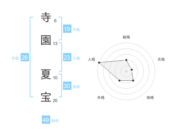 寺園 夏宝さんの総格は49画の2点!