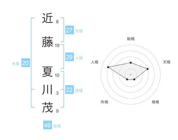 近藤 夏川茂さんを姓名の画数から五運を鑑定
