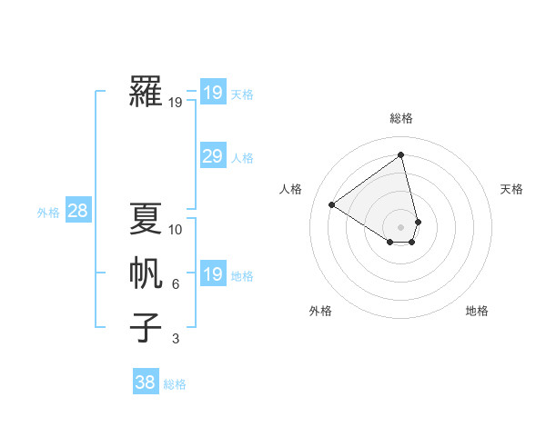 羅 夏帆子さんを姓名の画数から五運を鑑定