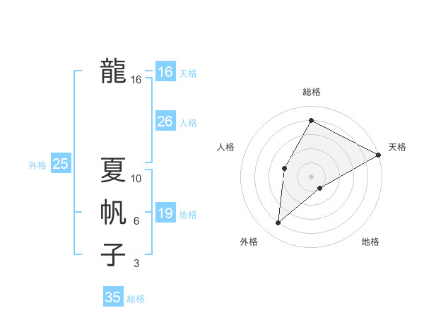 龍 夏帆子さんを姓名の画数から五運を鑑定