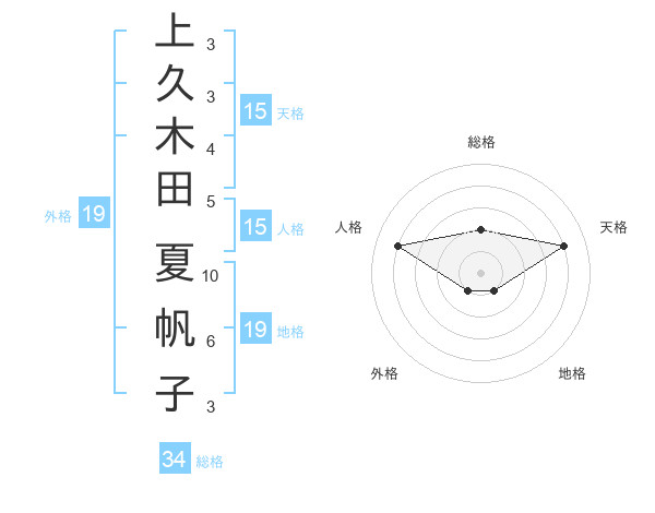 上久木田 夏帆子さんを姓名の画数から五運を鑑定
