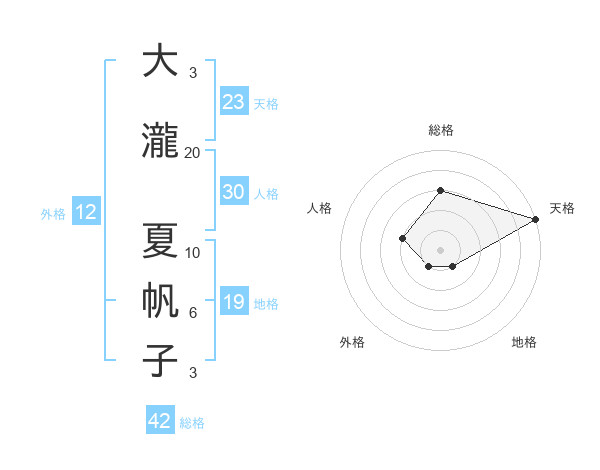 大瀧 夏帆子さんの天格は23画の5点!