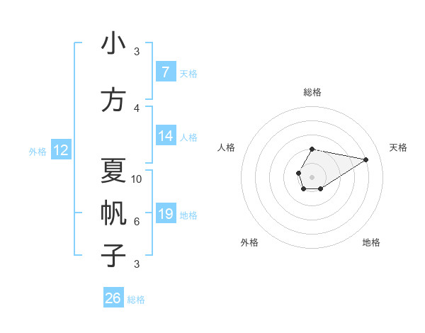 小方 夏帆子さんを姓名の画数から五運を鑑定