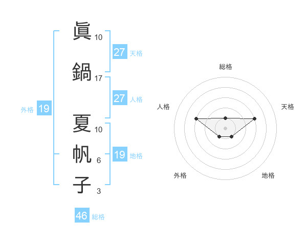 眞鍋 夏帆子さんを姓名の画数から五運を鑑定