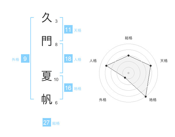 久門 夏帆さんの総格は27画の3点!