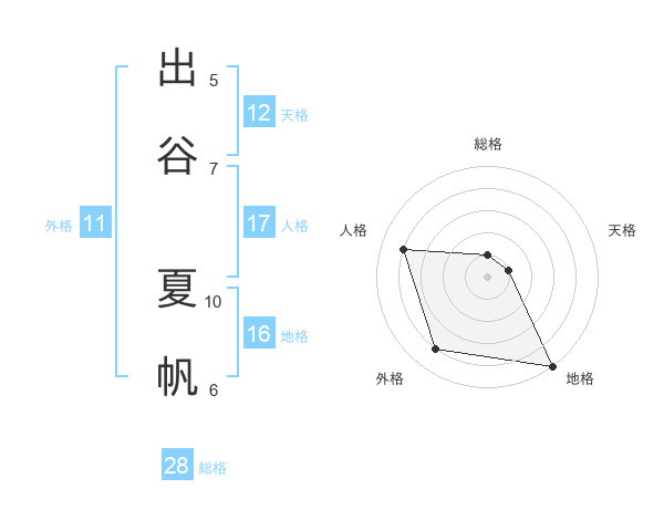 出谷 夏帆さんを姓名の画数から五運を鑑定