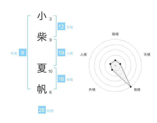 小柴 夏帆さんを姓名の画数から五運を鑑定