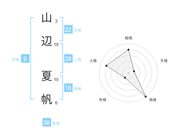山辺 夏帆さんの総格は38画の4点!