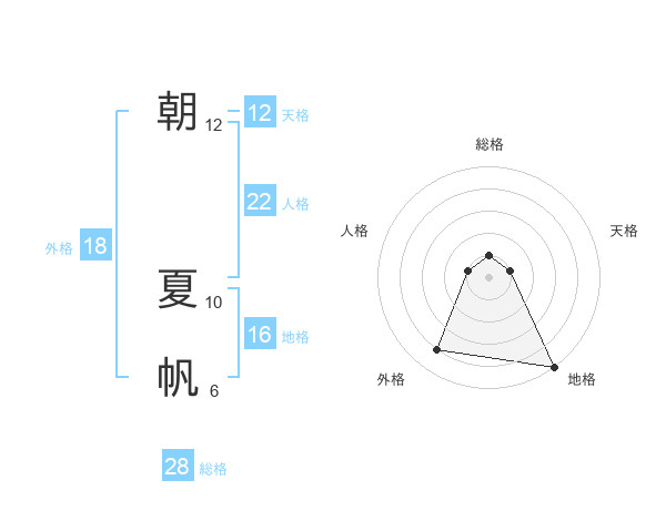 朝 夏帆さんの天格は12画の1点!