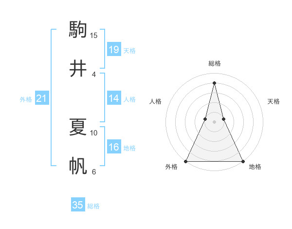 駒井 夏帆さんを姓名の画数から五運を鑑定