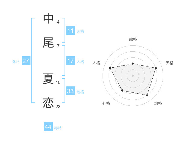 中尾 夏恋さんの総格は44画の2点!