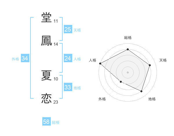 堂鳳 夏恋さんの天格は25画の4点!
