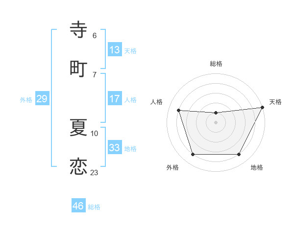 寺町 夏恋さんの天格は13画の5点!