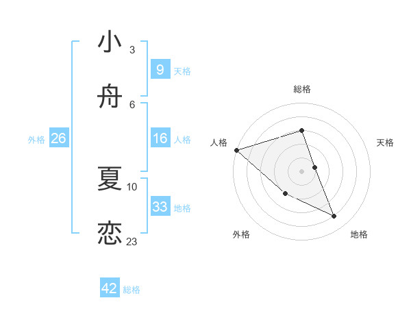 小舟 夏恋さんの総格は42画の3点!