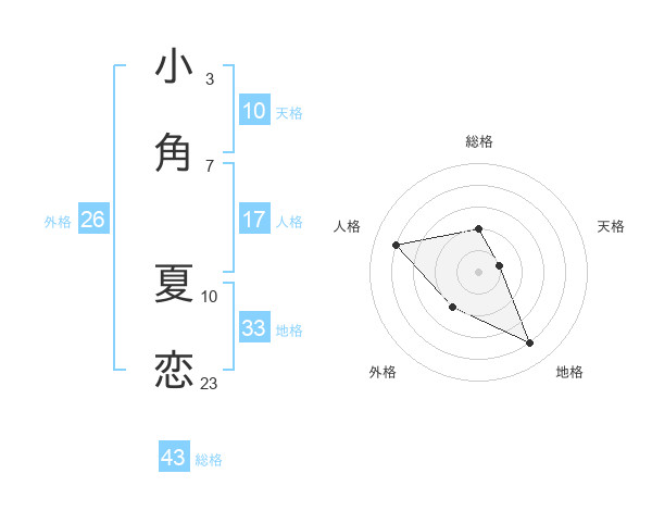 小角 夏恋さんを姓名の画数から五運を鑑定
