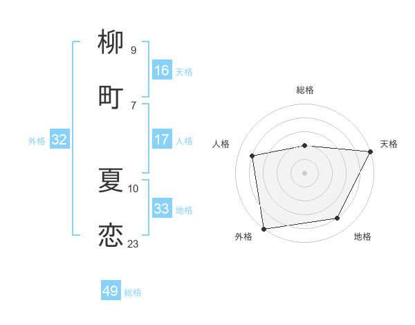 柳町 夏恋さんを姓名の画数から五運を鑑定