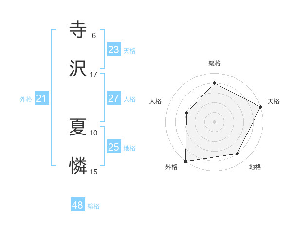 寺沢 夏憐さんの外格は21画の5点!