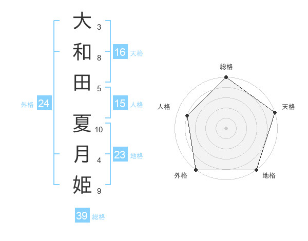 大和田 夏月姫さんを姓名の画数から五運を鑑定
