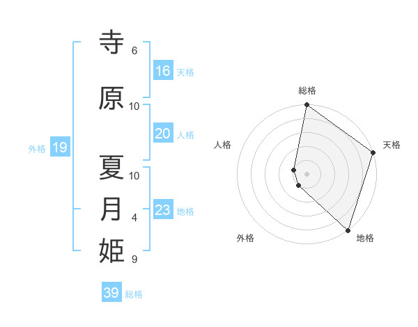 寺原 夏月姫さんの総格は39画の5点!