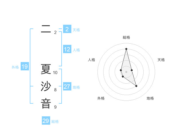 二 夏沙音さんの総格は29画の4点!