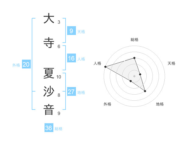 大寺 夏沙音さんを姓名の画数から五運を鑑定