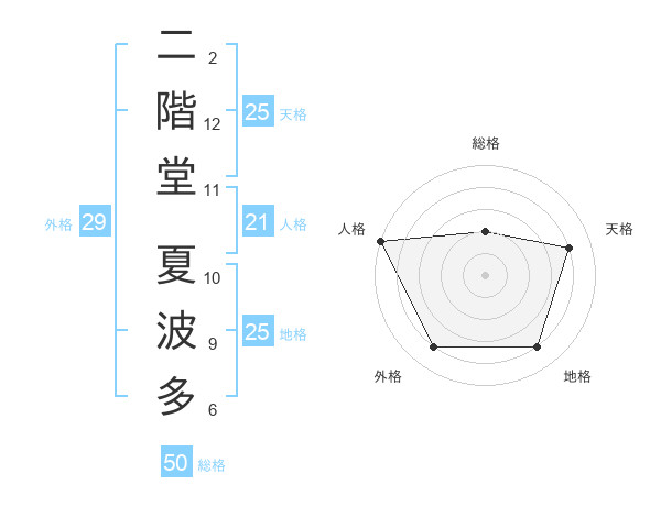 二階堂 夏波多さんを姓名の画数から五運を鑑定