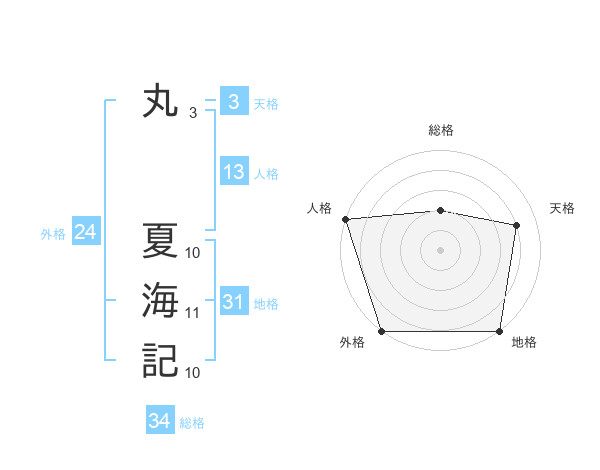 丸 夏海記さんを姓名の画数から五運を鑑定
