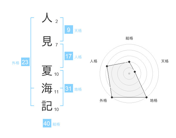 人見 夏海記さんの総格は40画の2点!